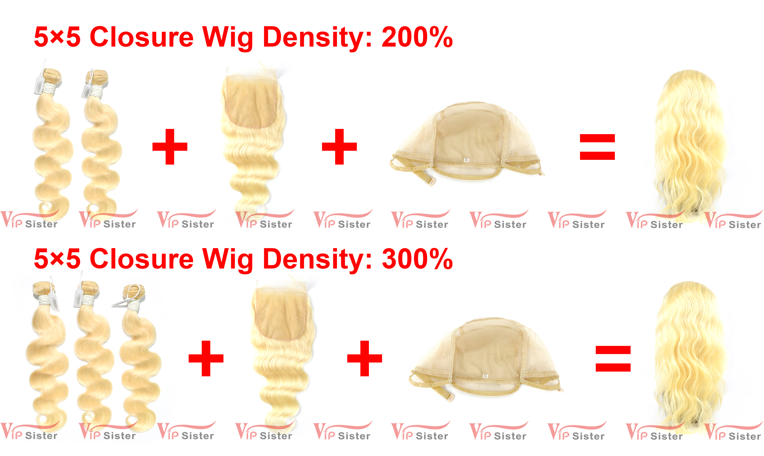 | Density | 200% density (made of 2 bundles with 1 lace closure /frontal) 300% density (made of 3 bundles with 1 lace closure /frontal) |