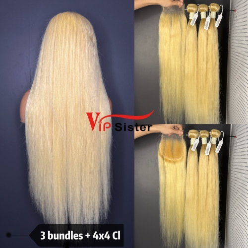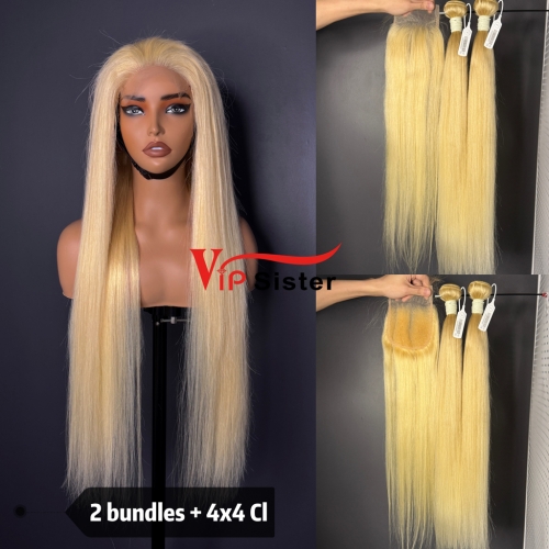 613# Eurpean 100% Top Virgin Human Hair Straight 4x4 Closure Wig