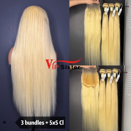 613# Eurpean 100% Top Virgin Human Hair Straight 5x5 Closure Wig