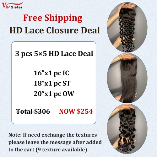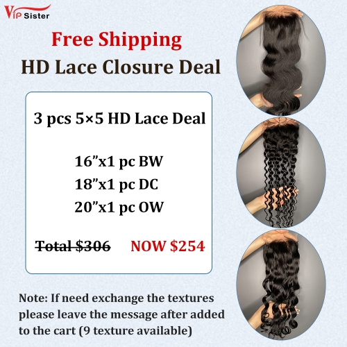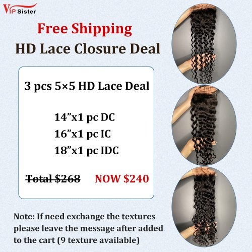 Vipsister 3PCS 5×5 HD Lace Closure Deal Free Shipping