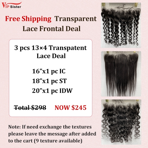 Vipsister 3PCS 13×4 Transparent Lace Frontal Deal Free Shipping
