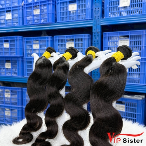#1b Indian 100% Full Cuticle Raw Human Hair Weft Body wave