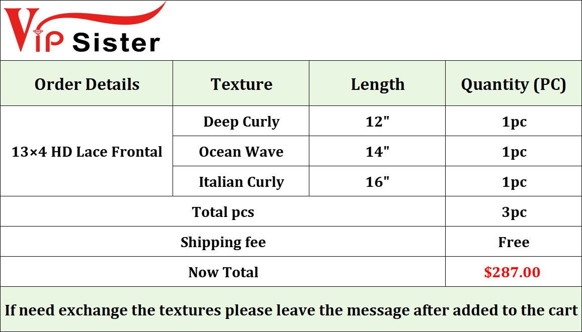 Vipsister 3PCS 13×4 HD Lace Frontal Deal Free Shipping,Sample +Wholesale Package