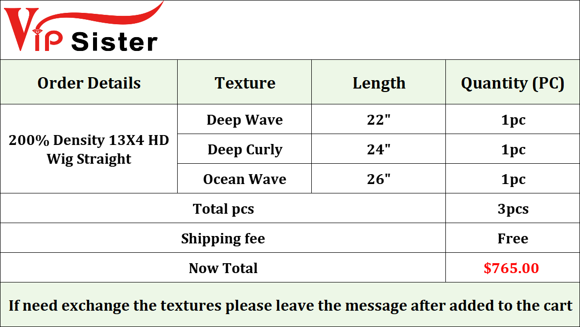 Vipsister 3PCS 13×4 HD Lace Frontal Wig Deal Free Shipping,Sample +Wholesale Package