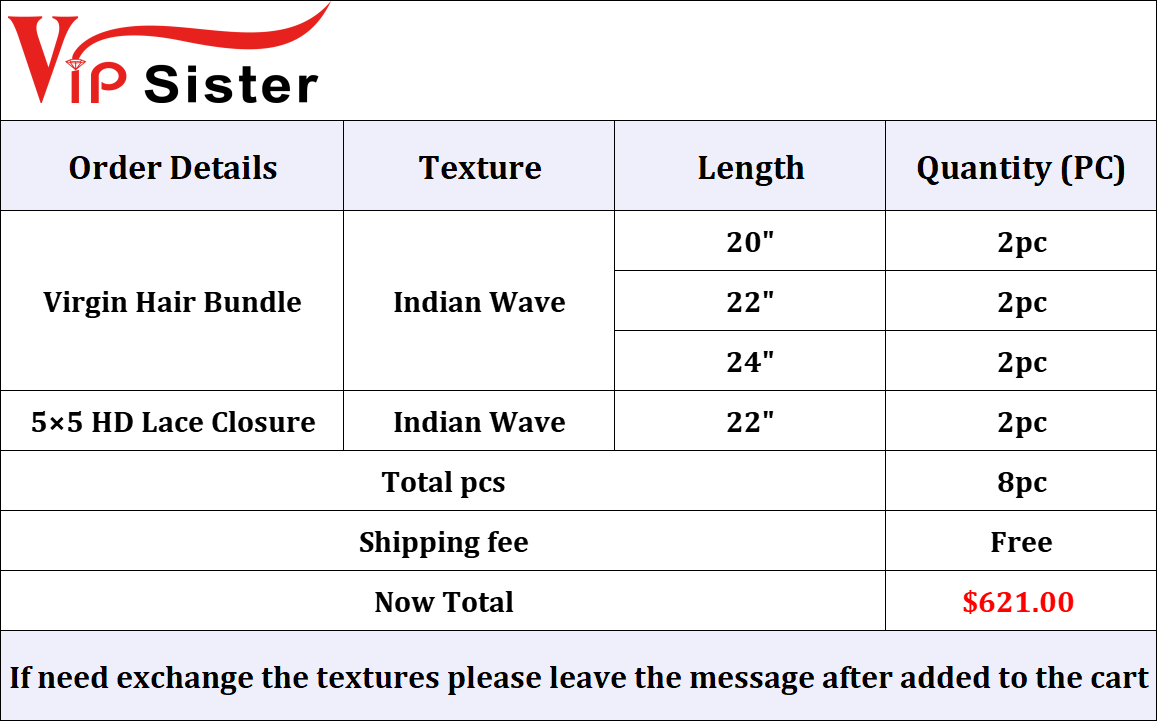Vipsister 6PCS Virgin Bundles And 2PCS 5×5 HD Lace Closure Deal Free Shipping,Sample +Wholesale Package