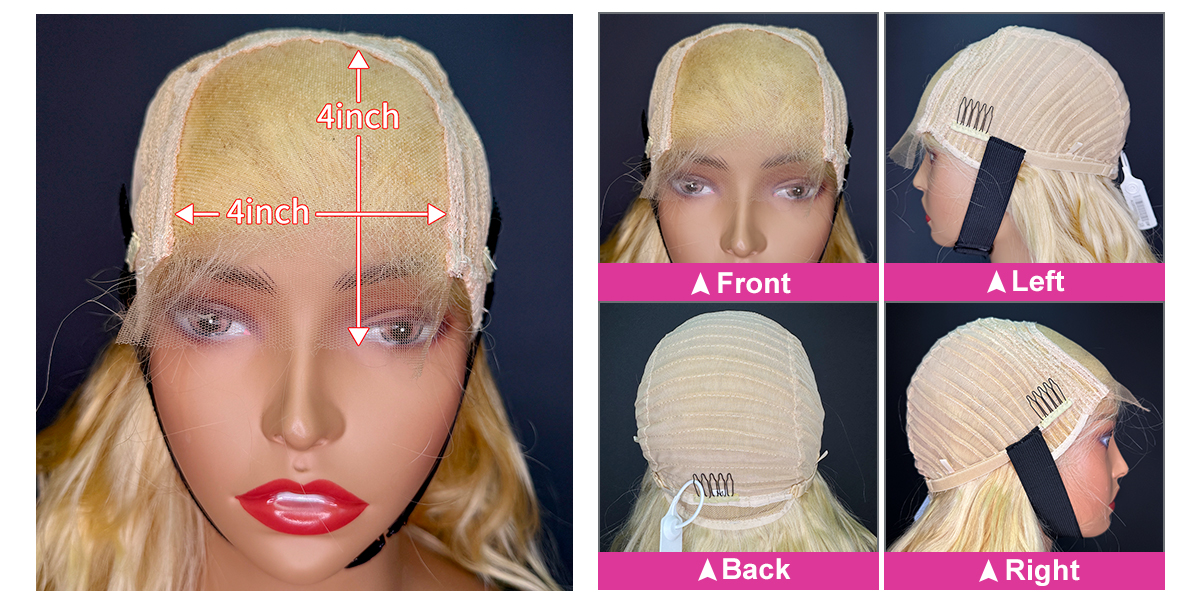 #613 Blonde European Virgin Human Hair Transparent 4x4 closure wig body wave