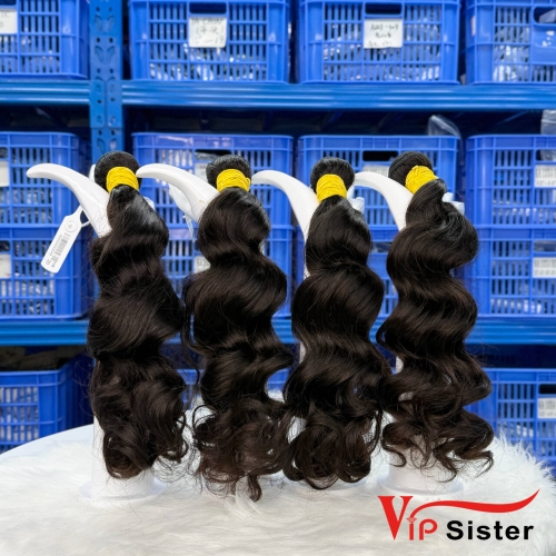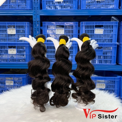 #1b Indian 100% Full Cuticle Raw Human Hair Weft Ocean wave