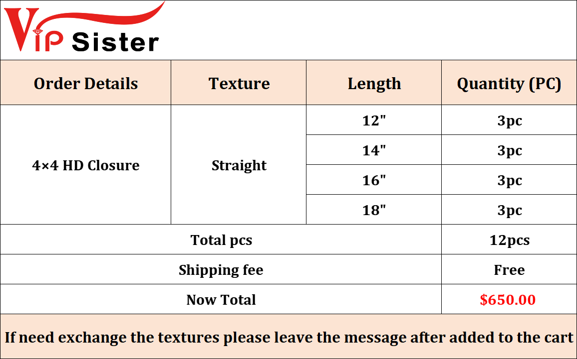 Vipsister 12 pcs indian hair 5×5 hd closure total 650$ free shipping