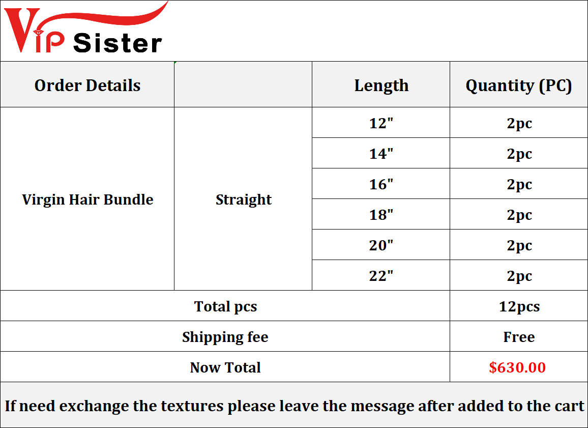 Vipsister 12 pcs indian virgin hair bundles total 630$ free shipping