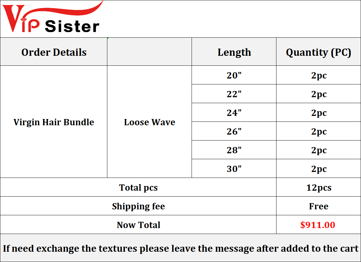 Vipsister 12 pcs indian virgin hair bundles total 911$ free shipping