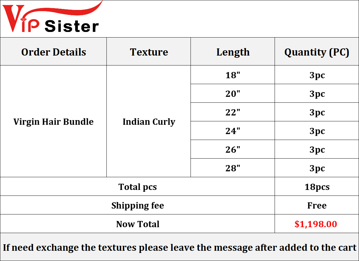 Vipsister 18 pcs indian virgin hair bundles total 1198$ free shipping