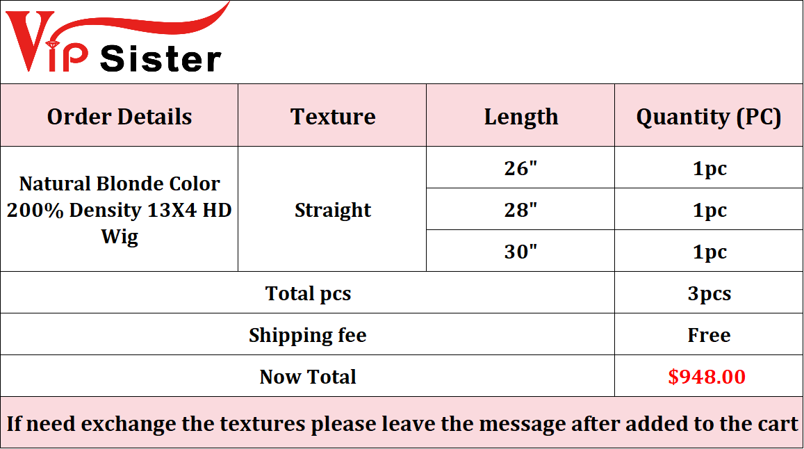 VipSister 3pcs 13X4 HD Frontal Lace Virgin Human Hair With Alignted Cuticles Wig Deal,Sample +Wholesale Package