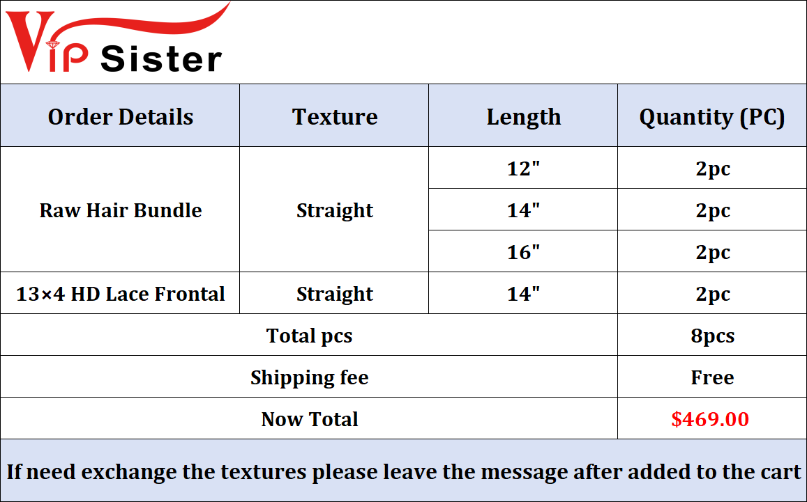 VipSister 6pcs Raw Hair Bundles And 2pcs13X4 HD Lace Frontal Deal